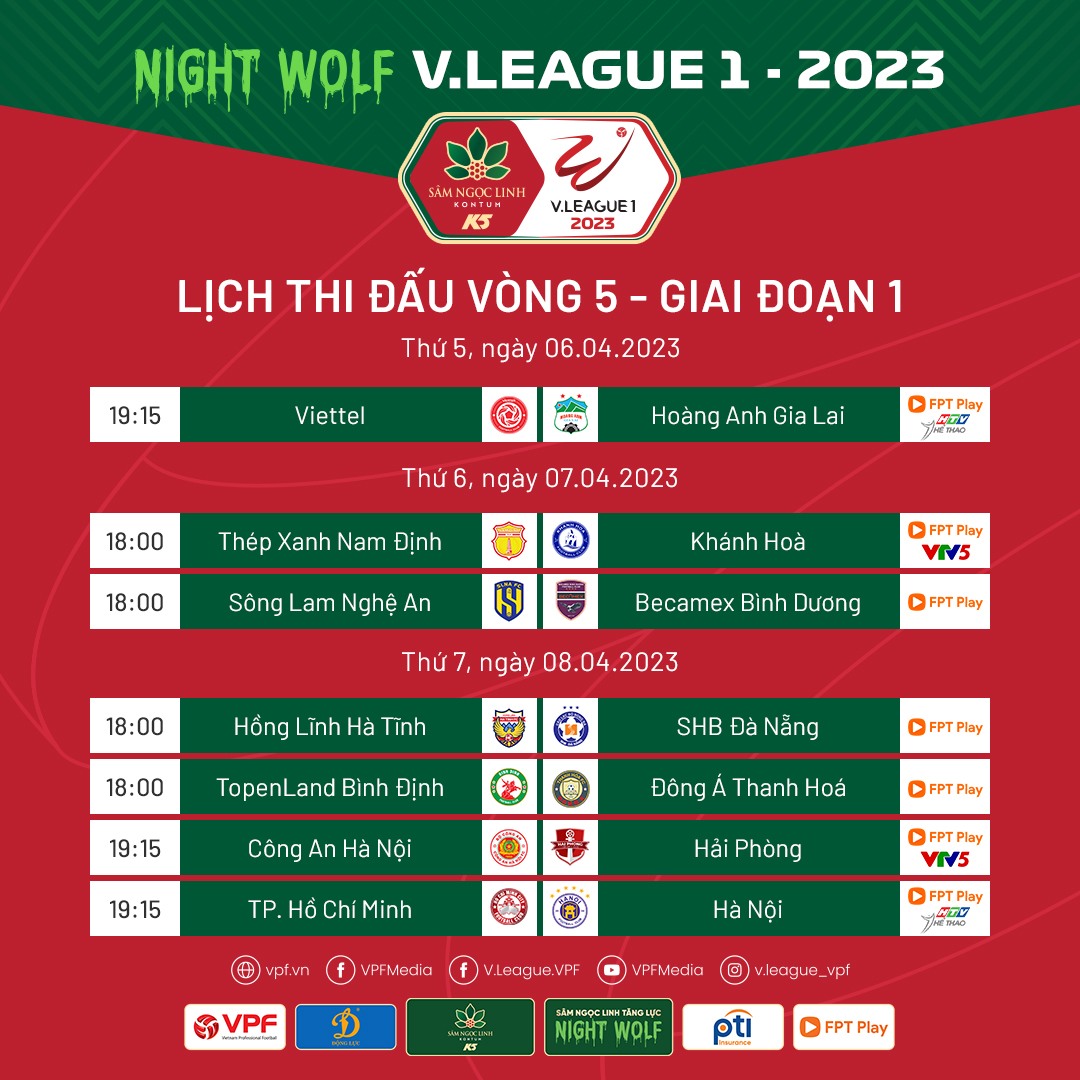 Lịch thi đấu vòng 5 V.League 2023.