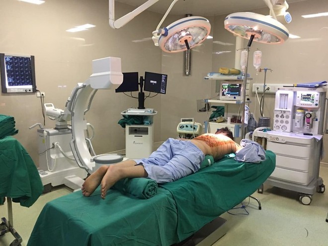 Theo kết quả chụp cộng hưởng từ cột sống ngực có khối máu tụ chèn ép tủy sống ngang mức D3-D4, nam thanh niên được hội chẩn và phẫu thuật mở đốt sống D3-D4 để giải ép và cố định lại. xương sống. .